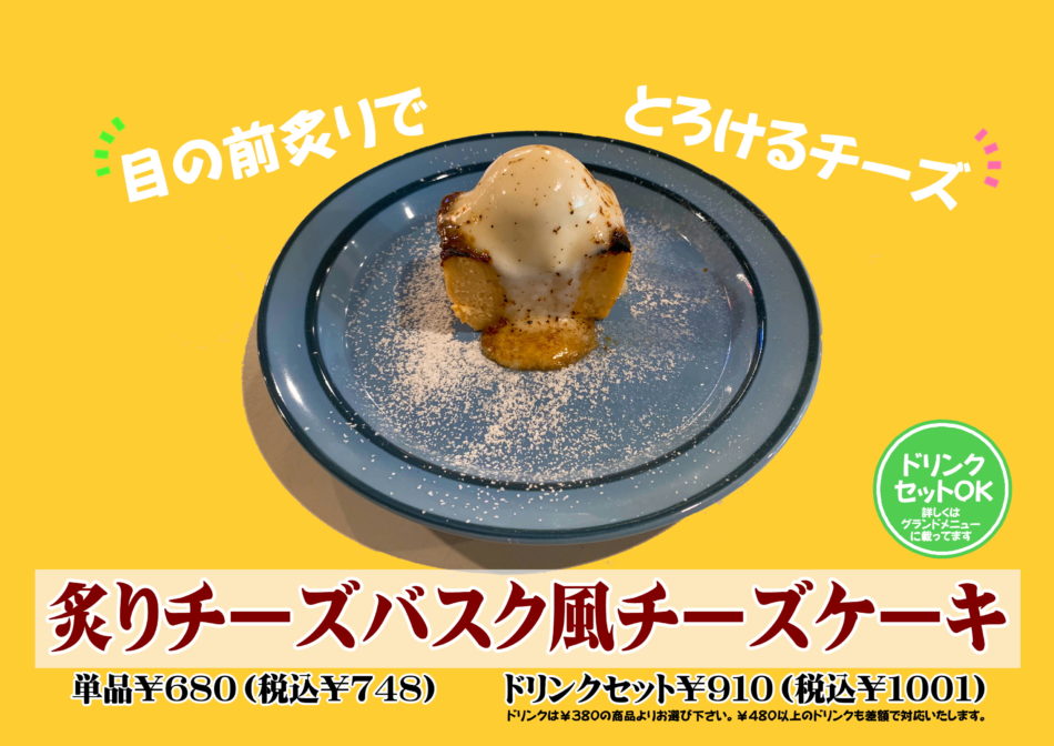 炙りチーズバスク風チーズケーキも登場!
